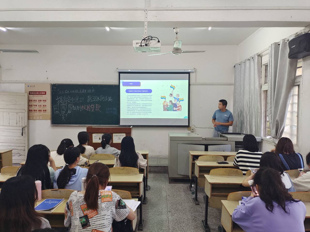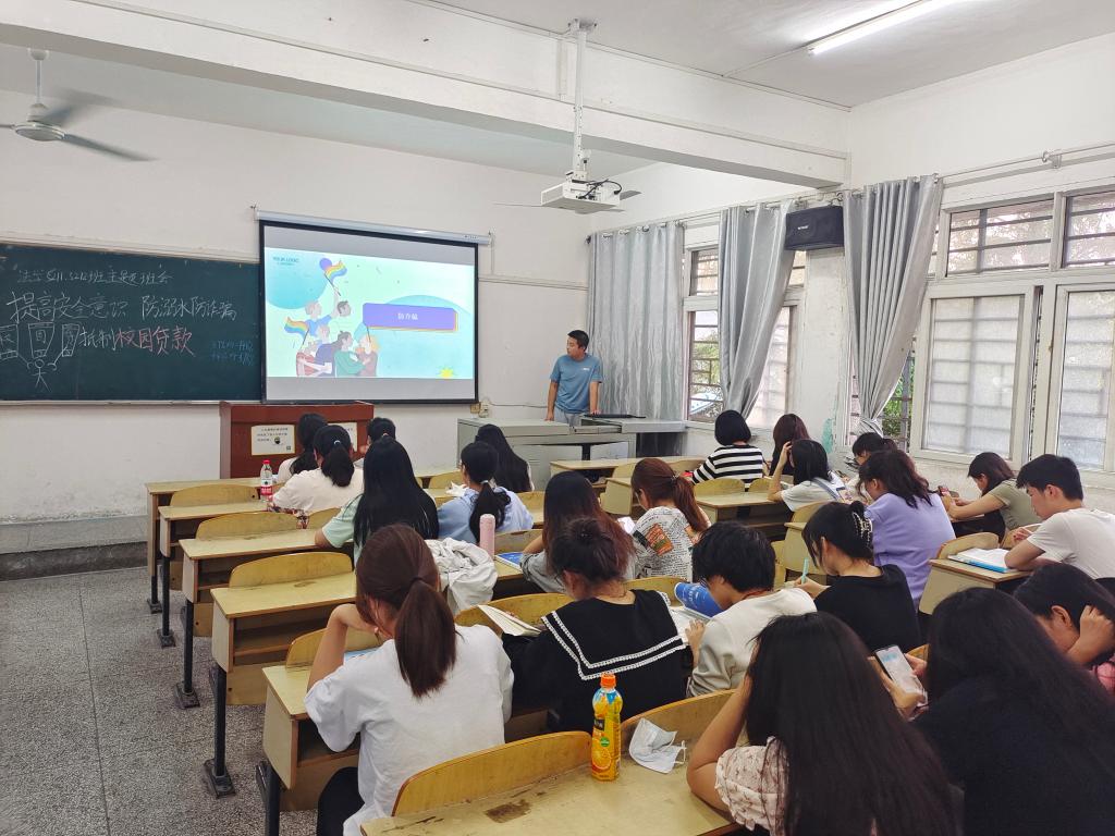 首先,生活委员从青少年溺水的整体特征、青少年溺水频发的主要原因以及防溺水的主要措施三个方面向同学们介绍了防溺水知识。接着,通过短视频的形式展示了不同的诈骗形式,使同学们对诈骗陷阱有了更深刻的了解。生活委员着重介绍了与老员工生活很贴近的校园贷,帮助同学们清晰辨别身边的“校园贷”诈骗业务圈套。最后,生活委员提醒大家要时刻对诈骗行为保持清醒认知,守护自己的合法权益。
