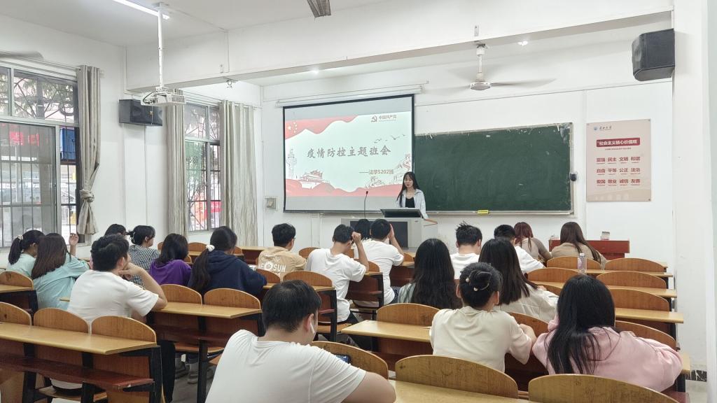 本网讯(见习记者 田雨洁)近期,新型冠状病毒肺炎疫情牵动全国人民的心,响应国家号召,全力支持疫情防控工作,是我们义不容辞的责任。为做实做细疫情防控工作,经法系于9月28日开展“疫情防控”主题班会,会议由各班班长主持。