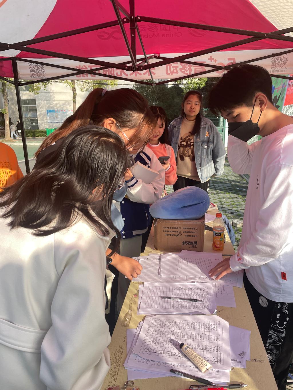 在“载福予人”活动中,同学们可以选择回答一份问题,答对一定数量的问题后可以在不透明箱子里抽取一张卡片,在卡片上写下祝福语,写完祝福语后可领取一份特别礼品。在“冬日投壶”活动中,工作人员给予参与活动同学三支羽箭,投中一支即可获得一次抽奖机会。活动进行时,吸引了许多同学前来参加,同学们们耐心为他们讲解活动规则,并鼓励大家勇于尝试,每一位同学脸上洋溢着笑容。