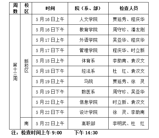 3.教务处抽查,教务处将在5月16日至5月22日组织督导专家对相关教学资料进行抽查,并将检查结果及整改意见反馈到各教学单位。