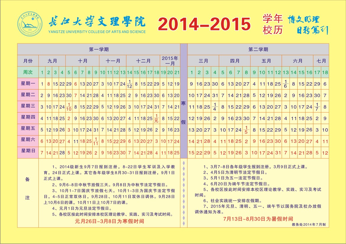 2014-2015学年校历
