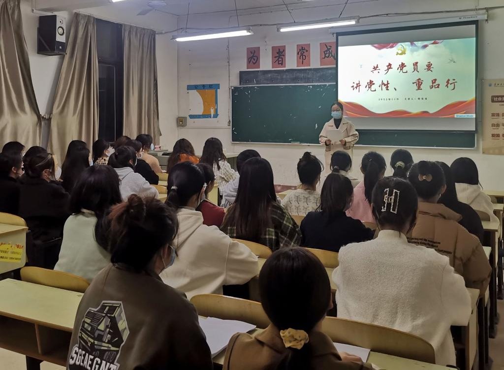 2022年4月7日16:00,教育与心理系在3-201教室开展讲党课活动,本次活动的主题为“共产党员要讲党性、重品行”。教育系全体党员参加活动,本次党课由教育与心理系党总支副书记梅曼曼主讲。