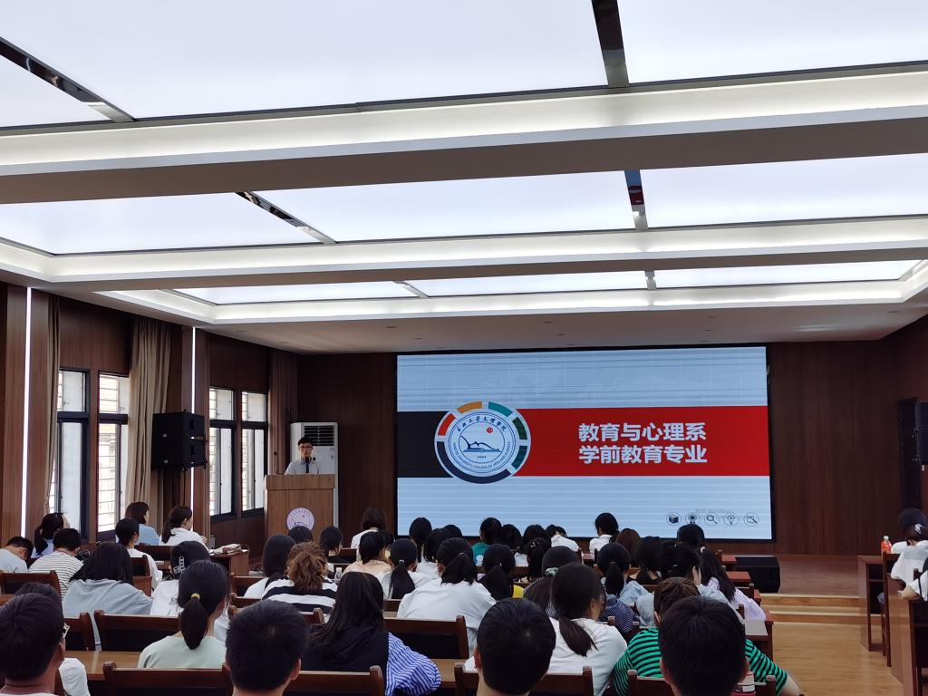 本网讯(通讯员何祥苗)9月29 日,教育与心理系在3教408学术报告厅开展了2021级学前教育专业新生专业教育,系主任徐霄、副主任马君莉、学前教育专业全体专任教师、班主任、辅导员和全体大一新生参加大会。