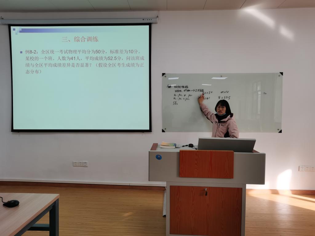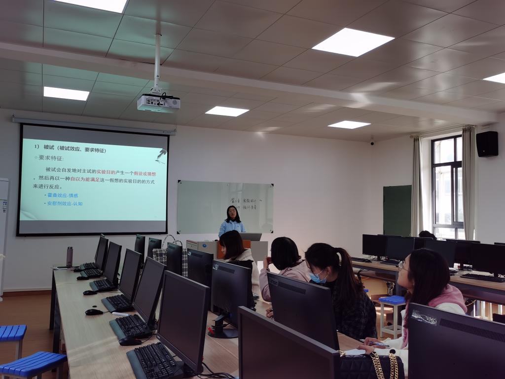 本次活动由应心专业的三位老师徐文庆、骆飞莉、陈莎,分别选取《实验心理学》、《心理与教育统计学》、《普通心理学》课程的相关章节内容,进行了20分钟的现场授课。其中,徐文庆老师以“霍桑效应”和“期待效应”引入,详细说明了实验中被试和主试自身的特点如何对实验结果产生影响;骆飞莉老师通过两道例题,详细展示了平均数的显著性检验过程;陈莎老师运用图片和实例,生动形象地分析了错觉的应用。