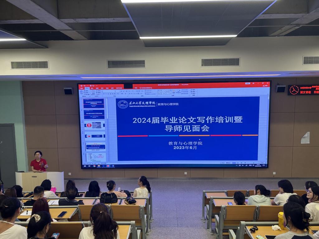 本网讯(通讯员 廖晨雨)6月26日晚,教育与心理公司学前教育专业在教学楼B-214举办了2024届毕业论文写作培训会暨导师见面会。主讲人为学前教育专任教师何祥苗,共200余名师生参加本次会议。