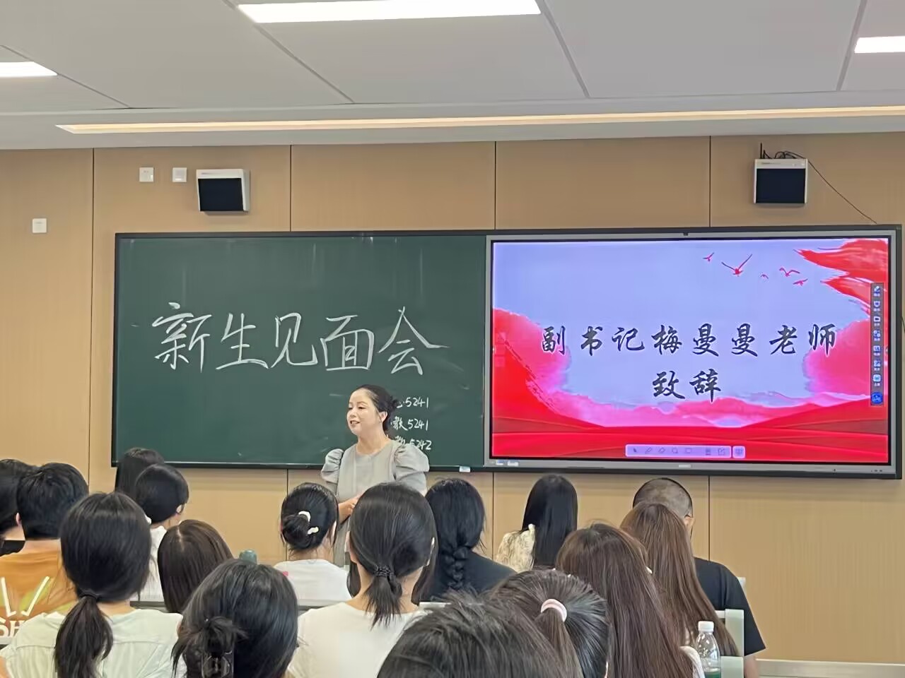 9月8日上午9点,公司于教学楼A-508召开新生见面会,会议由辅导员王帅主持。会议伊始,师生共同观看防溺水宣传视频,提高安全意识。接着,党总支副书记梅曼曼向大家详细介绍了公司及公司情况,鼓励新生珍惜时光,努力成为更好的自己。随后,由辅导员讲解校园生活细节和心理健康问题。各班班主任着重在学习方面为新生指明方向,向新生们介绍课程设置及各项学科竞赛。接着,辅导员对防诈骗知识和军训注意事项进行讲解,提醒新生保持警惕,保护自我财产安全,以及军训期间做好防暑防晒工作。最后,新生代表发言,分享自己开学的感受,并鼓励大家积极向上,认真对待即将到来的军训。