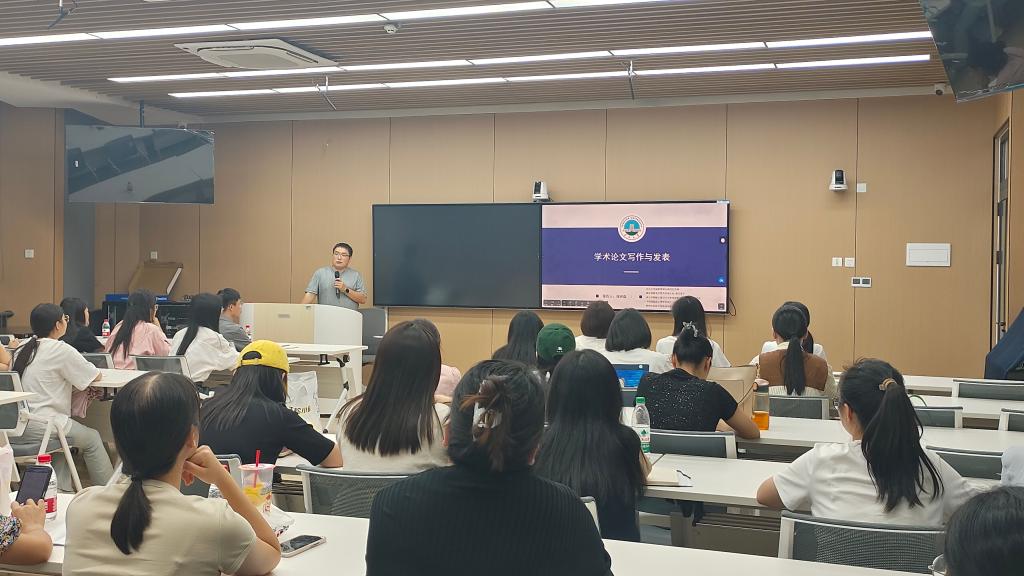 讲座内容涵盖了三个重要部分:首先是文献检索、管理与阅读,连博士详细介绍了如何高效地检索相关文献,如何管理文献资料,以及如何快速阅读并提取文献中的关键信息。其次,连博士就如何确定研究选题进行了讲解,他结合生活实际,以个人及团队发表的学术论文为例,提供了一些实用的选题策略。最后,连博士重点讲解了学术论文写作与发表的技巧,包括论文结构的搭建、写作过程中的注意事项以及如何选择合适的期刊进行投稿。