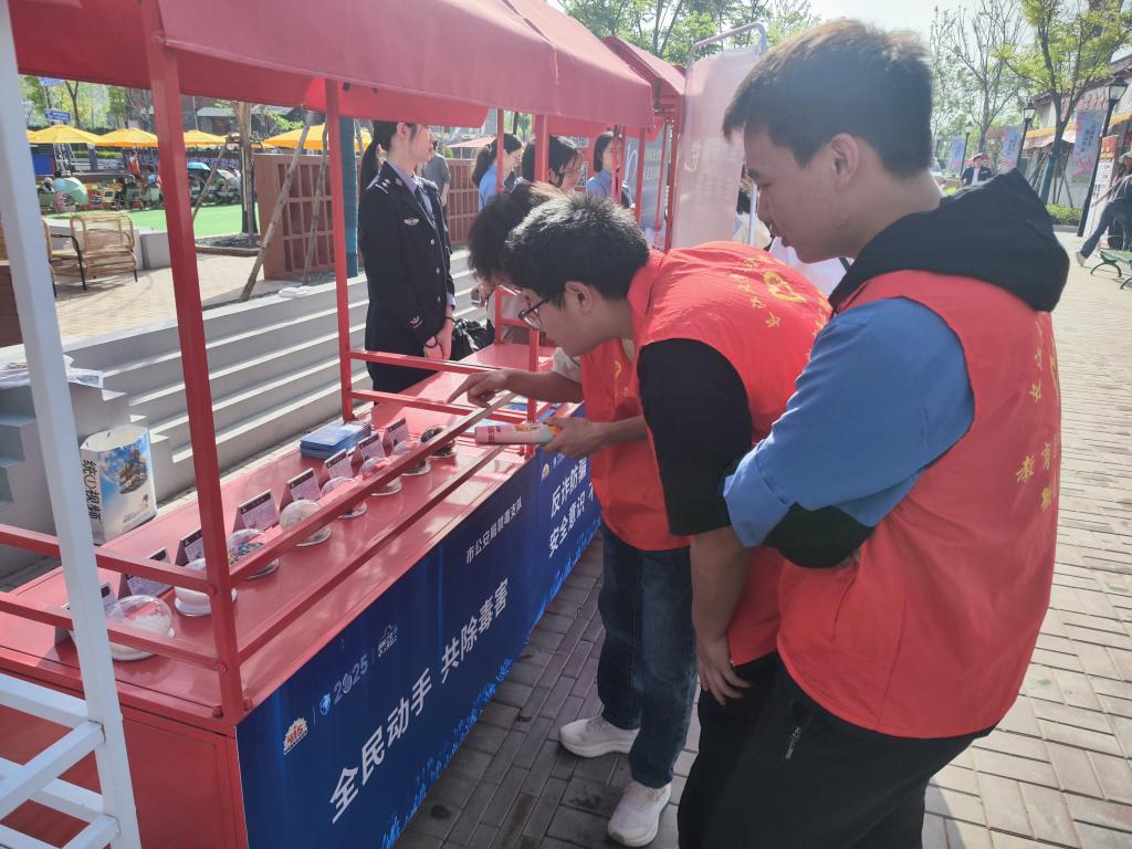 活动现场亮点纷呈。在有奖竞猜区域,志愿者们热情地引导观众参与活动。他们从志愿者手中抽取写有问题的卡片,题目涵盖了国家安全的各个方面,从政治安全到网络安全,从生态安全到文化安全。接下来是参观宣传栏,从国家安全的概念、涵盖领域到日常生活中的注意事项,宣传栏图文并茂的展示让同学们对国家安全有了更直观、更全面的认识。志愿者们的现场讲解更是将活动推向高潮,他们结合当下国际国内形势,用生动鲜活的案例和通俗易懂的语言,深入浅出地为同学们解读国家安全知识,让原本抽象的概念变得易于理解,现场互动频繁。