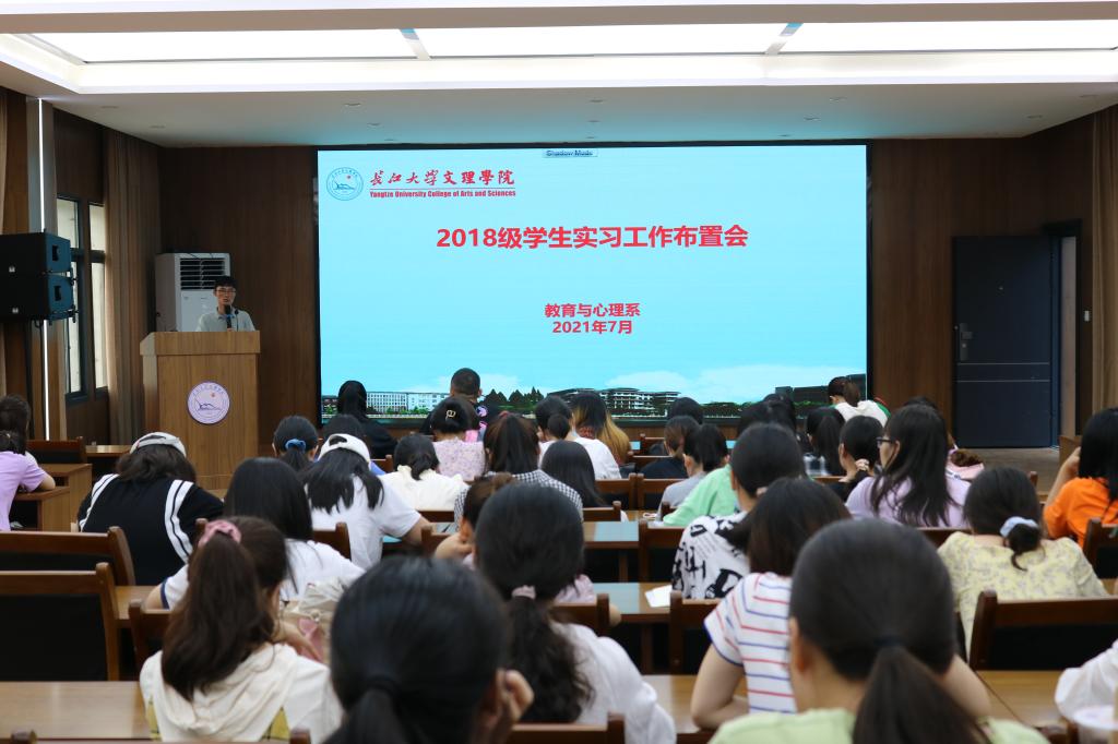(通讯员 梅曼曼)2021年7月5日下午,我系在学术报告厅举行2018级实习工作布置大会。系主任徐霄、书记李刚英,副主任马君莉,副书记梅曼曼,实习带队教师代表肖雅筠,辅导员覃儒卿及2018级学前教育专业全体本科生出席了本次会议。本次会议由副书记梅曼曼主持。