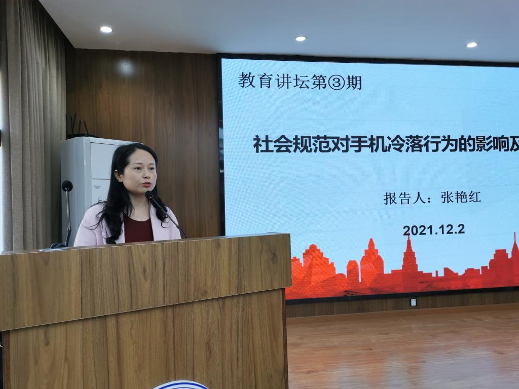 张艳红以“社会规范对手机冷落行为的影响及其心理机制”为题作报告。她从手机冷落行为形成的原因、社会规范对于手机冷落行为的影响及作用机制、4个研究来分析影响手机冷落行为的内、外原因。就手机冷落行为的改变方法展开探索,并提出对这一研究的未来展望。在互动环节,张艳红针对员工提出的问题一一进行了解答。