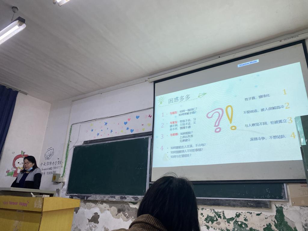 为了使班会更贴近现实生活,会前,陈莎向大家征集了在老员工活期间遇到的有关人际交往的问题和容易导致人际冲突的因素,总结了同学们最关注的与朋友、室友、老师之间的交往问题,并通过视频中的真实情景引发同学们的共鸣和讨论。
