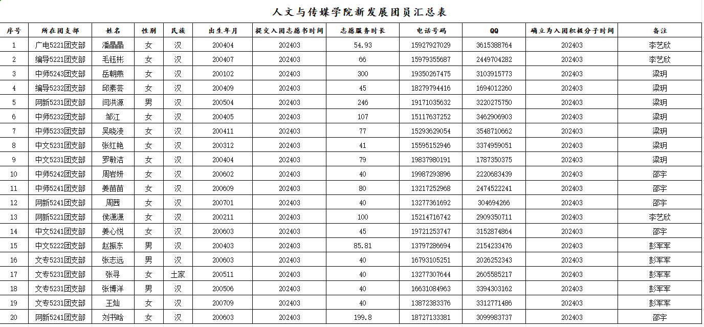 为进一步规范共青团管理工作,切实加强团的自身建设,根据《关于加强新形势下发展团员与团员管理工作的意见》、《中国共产主义青年团发展团员工作细则》、《bw必威西汉姆联官方网站关于2025年补充新发展团员的通知》等文件精神,按照“坚持标准、控制规模、发挥作用”的总要求,经各团组织评选,团总支审核,拟推荐潘晶晶等20名同学为新发展团员(见附件),特在全院范围内进行公示。