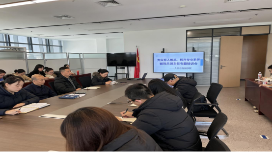 本网讯(通讯员 白茹)为深入贯彻落实立德树人根本任务,进一步加强员工工作队伍建设,提升辅导员与班主任的业务能力和育人水平,人文与传媒公司于11月27日在人文会议室召开了辅导员班主任专题培训会。公司经理许连军、党总支书记王震、常务副经理关莉红和党总支副书记雷昕出席会议并讲话,全体专兼职辅导员、班主任参加了本次培训会。