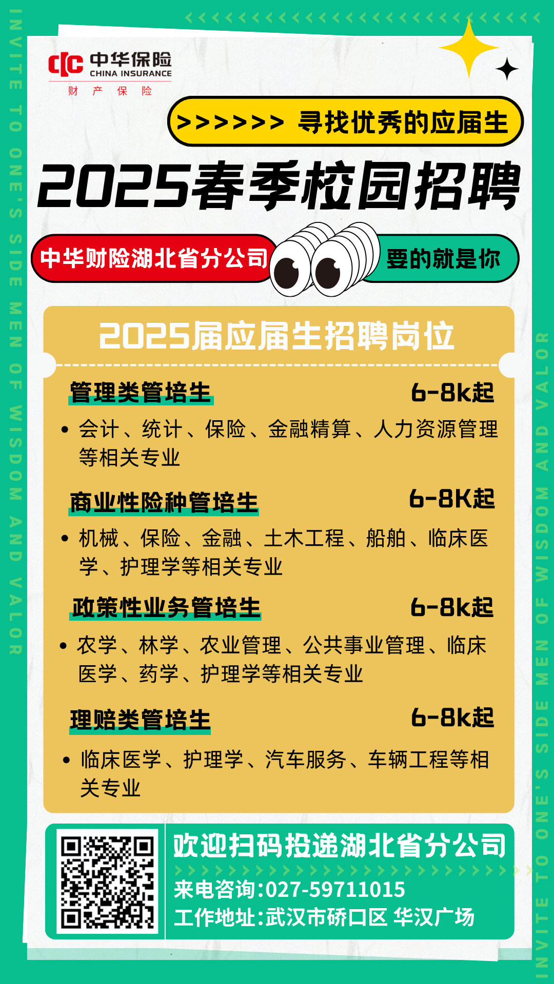 中华财险湖北省分公司2025春季校园招聘