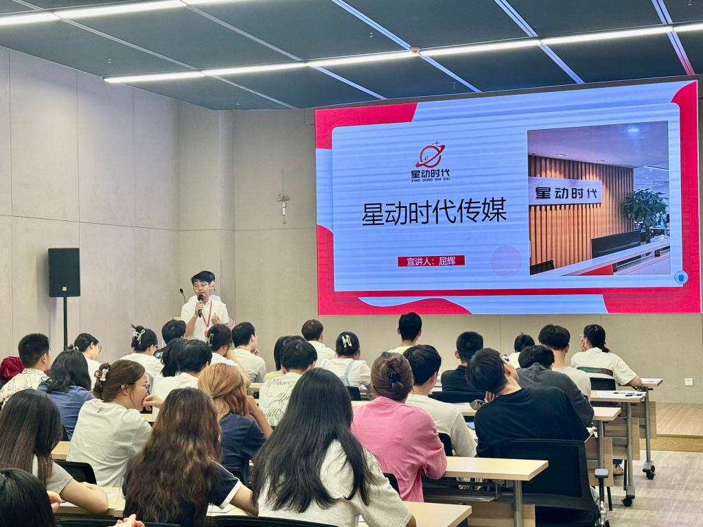 本网讯(通讯员 程悦)为切实做好2025届毕业生就业工作,加大毕业生就业岗位供给。9月24日下午,湖北星动时代传媒有限公司应邀到公司举办专场招聘宣讲会,2025届毕业班辅导员、在校毕业生及部分非毕业生参加招聘活动。