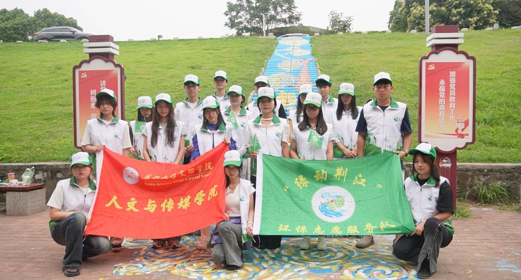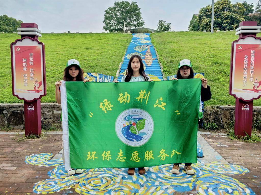 本网讯(通讯员 梁玥 冯佳妮)夏日的荆江堤边,一段老旧的水泥坡道正悄然蜕变。来自bw必威西汉姆联官方网站人文与传媒公司的“绿动荆江”环保志愿服务队们,联合沙市区荆江亭社区共同开展“艺术+生态”护坡美化活动,师生们手持画笔走上江堤,将艺术创意与生态理念挥洒在坡道上,绘就出一幅守护长江的动人画卷。