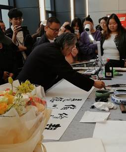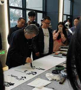 活动伊始,唐和先生向同学们解读了中华传统书法和水墨画,在讲演的过程中,唐和先生还穿插了一些自己练习书法的小故事。现场互动环节非常激烈,唐和将自己的书画篆刻作品集拿给同学们传阅欣赏。最后,唐和先生现场展示命题创作,让其同学们自主命题,现场设有现场展示台,让同学们能够尽情欣赏。活动最后,唐和先生将完成的书法作品送给同学们,同学们都表示非常激动和高兴。至此,本次讲座圆满结束。