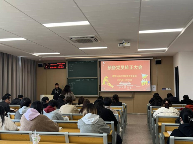 (本网讯 王杨)2025年11月27日,建筑与设计公司员工党支部在教学楼C-226召开预备党员转正大会,审议并通过关于刘鋆等八名同志由预备党员转为正式党员的决议。会议由党总支副书记成观雄主持,员工党支部全体党员参加。