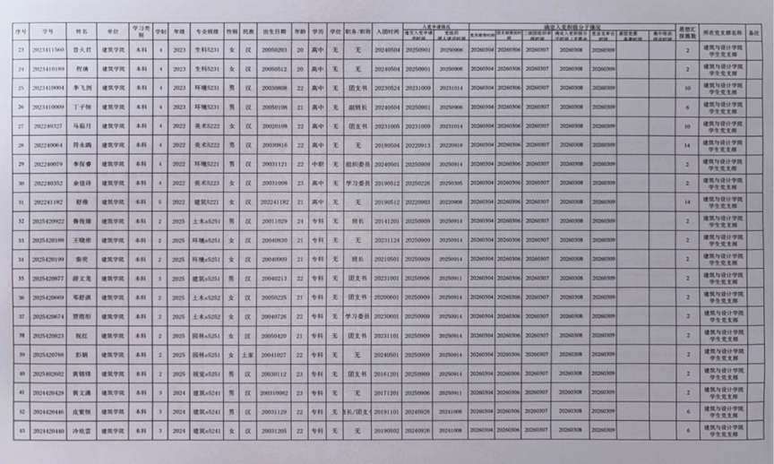 根据党员推荐和团组织推优情况,经支部委员会会议讨论决定并报建筑与设计公司党总支备案,确定张萍等43名同学为入党积极分子,现予以公示。