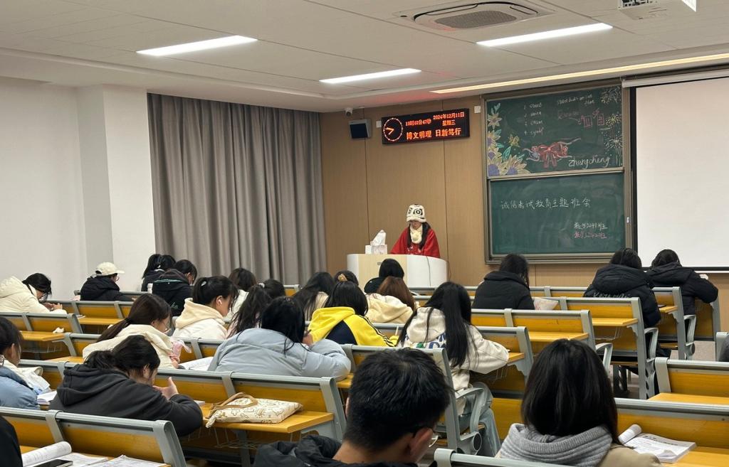 班会上,班主任围绕期末考试、四六级考试、研究生考试等系列考试的相关要点进行深入讲解。首先,班主任着重强调诚信考试的重要性,解读了公司关于考试的各项规章制度,明确讲述作弊行为的界定,警示同学们务必坚守道德与规则红线。随后,向大家分享高效复习策略与技巧,通过多元方式助力同学们夯实所学知识,强化学习成果。
