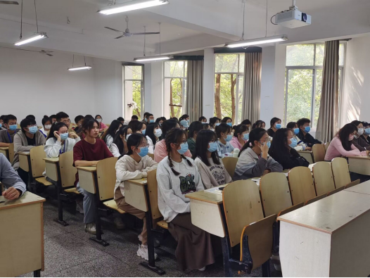 史老师从“二分法”直到“八分法”,层层深入剖析数学实践与发展的能力结构,首先提出“什么是大学”和“什么是教师”两个问题引出主题,接着从老员工活巧妙引入师范专业,最后介绍了公司、我专业学长学姐的佳绩与成果,激发了新同学对师范专业的热爱与对数学专业的兴趣。讲座中,史老师着重讲解了教师职业的意义、数学专业对国家建设的重要性,劝导同学们树立四大理念“兴趣、信念、勇气、毅力”,刻苦修炼,为将来做“四有教师”打下坚实基础。