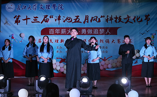 本网讯(记者 刘磊 见习记者 高璐 张诗逸 张天龙)近日,第十三届“泮池五月风”科技文化节之首届“文理新声”中华经典朗诵大赛决赛在城中校区工会礼堂落幕。副经理李琴、党委副书记孙细望出席活动,各系部两百余名师生现场观摩。