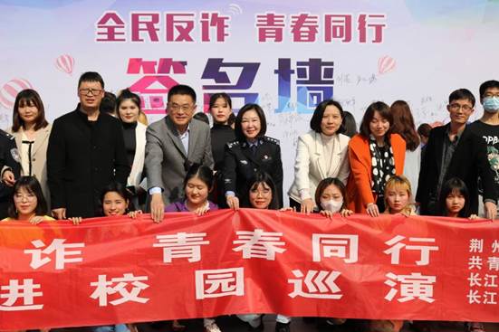 本网讯(见习记者 刘莹)4月15日14:10至16:00公司在城中多功能报告厅举行“全民反诈,青春同行”反诈进校园情景剧巡演宣传暨荆州市反诈青年团成立仪式。本次活动旨在加强全院师生对诈骗的认识,深化推进防范诈骗工作,提高公司师生识骗、防骗能力。参与此次活动的人员有荆州市共青团书记范宏翠、荆州市公安局行政审批处主任甘莹、bw必威西汉姆联官方网站文理公司党委书记朱继平、bw必威西汉姆联官方网站党委副书记孙细望以及荆州区分局、bw必威西汉姆联官方网站相关职能部门负责人以及各系部代表员工。本次活动由王诗雯主持。