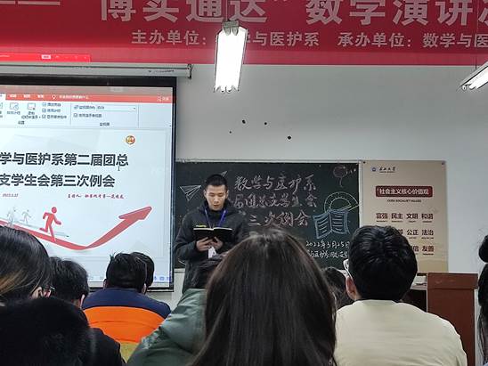 本网讯(见习记者 刘星 李程欢) 3月25日19:00,数医系团总支员工会在四教201开展了第三次例会。本次例会的主要内容是各部门对开学以来的工作和活动进行总结、提出问题和改进方案并做出未来展望。参与此次会议的有数医系团总支员工会主席团、各部门部长及干事。本次例会由秘书部范凌龙主持。