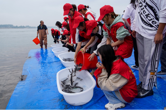 本网讯(见习记者 胡洁)6月6日上午,数学与医护系七色花志愿队参与荆州市农业农村局举办的“6.6”全国放鱼日荆州市中华鲟放流活动,积极响应养护水生生物资源的号召,营造关爱珍稀濒危水生物种中华鲟,保护水域生态环境的良好氛围,提升全社会保护渔业资源的认知水平。