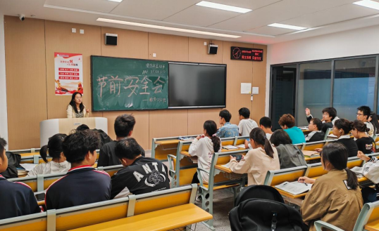 本网讯(见习记者 刘颖 彭淑慧)9月26日晚上,我系各班在教室开展节前安全教育主题班会,辅导员老师全程参与。