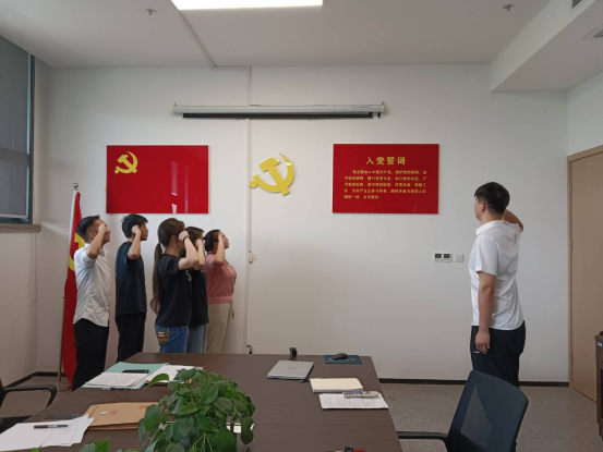 最后,全体党员面对党旗,重温入党誓词,进一步增强了党员的使命感和思想政治觉悟。