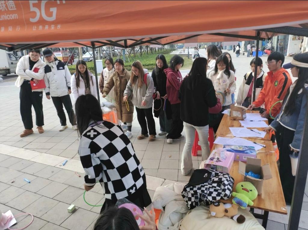 心环之旅活动中,工作人员提前地面勾勒出套圈区域,划分出不同分值与奖励板块,从代表轻松小确幸的 “零食角”,摆放着薯片、巧克力等美味小食,到寓意知识滋养心灵的 “书籍区”,陈列着涵盖心理学经典、励志故事、自我成长指南等各类读物,再到象征温馨陪伴的 “玩偶堆”,堆满了毛茸茸、憨态可掬的卡通玩偶,每一处区域都承载着对参与者的美好期许与心灵慰藉。