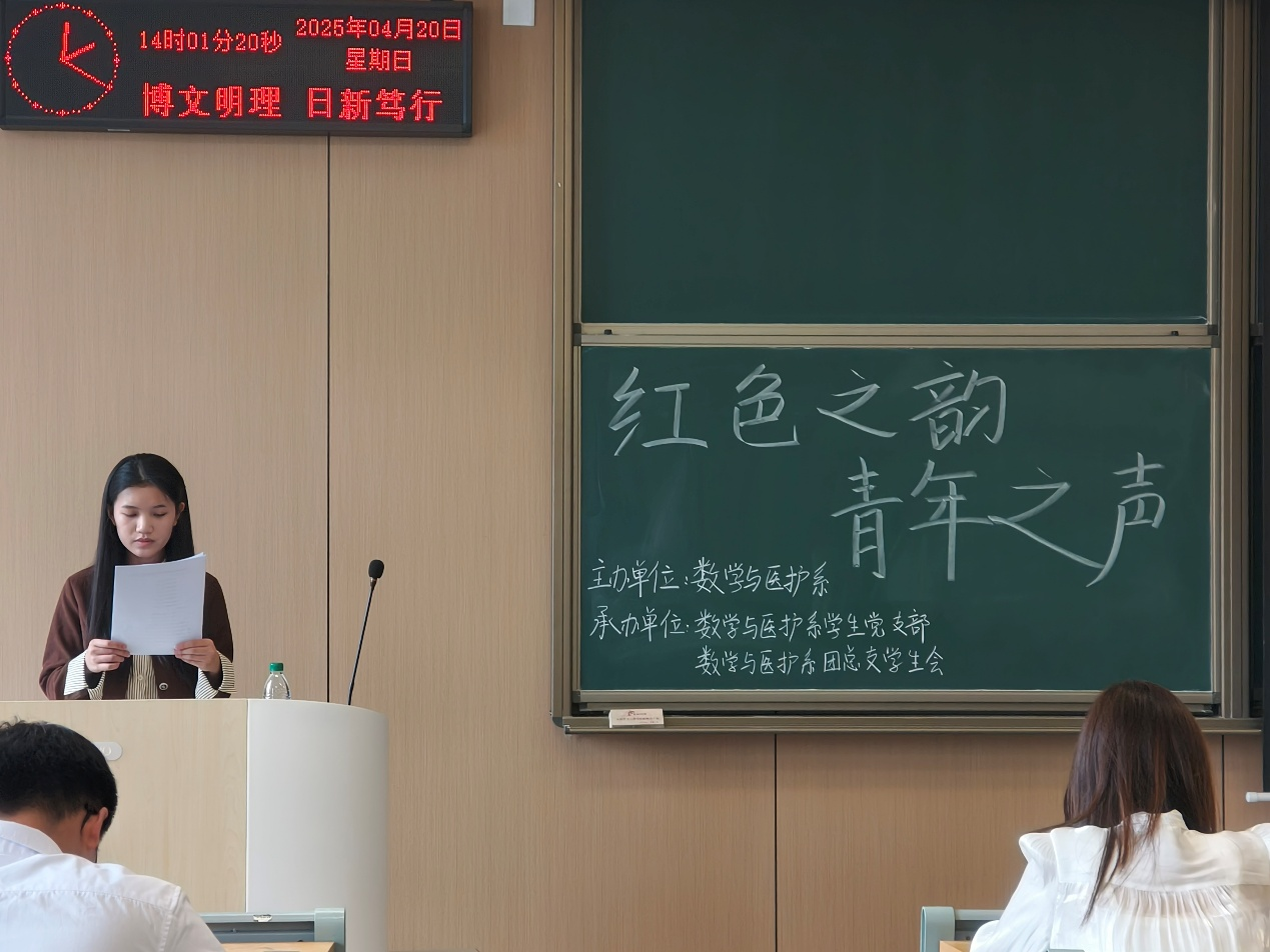 本网讯(见习记者 林张涵微)4月20日下午2:00,我系在A410教室开展“红色之韵 青年之声”朗诵比赛。出席本次比赛的评委嘉宾有数学与医护系团总支员工会副主席赵南燕和各部门部长。