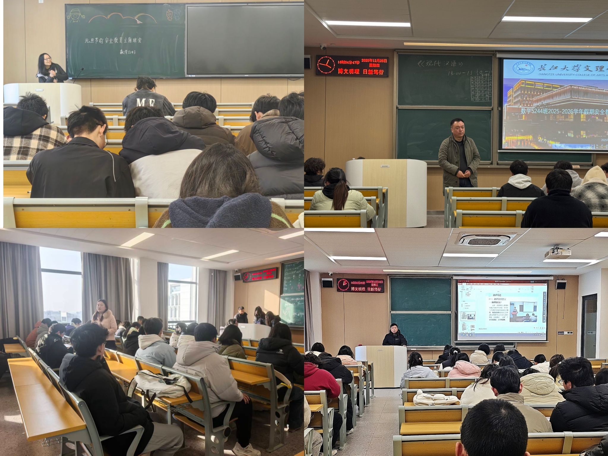 在各班级安全教育主题班会上,班主任、辅导员围绕元旦假期安全核心要点,结合近期典型安全案例,进行了全面细致的讲解。重点针对假期出行安全,提醒员工严格遵守交通规则,规避恶劣天气出行风险,谨慎选择出行方式和交通工具;聚焦消防安全,强调禁止携带易燃易爆物品 、严禁燃放或兜售烟花爆竹、规范使用电器等寝室安全准则,同时讲解火灾逃生自救常识;关注人身财产安全,警示员工警惕电信网络诈骗、防盗防骗,远离危险区域和不良场所;兼顾健康安全,引导员工合理规划假期作息,注意饮食卫生,远离各类安全隐患。此外,班会还就假期期间的应急联络机制等内容进行了强调,要求员工务必保持通讯畅通,遇突发情况第一时间向公司和家长报告。