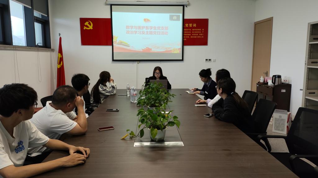 本网讯(通讯员夏怡玲)4月11日中午,数医系员工党支部在系部会议室开展4月份政治学习和“支部主题党日”活动。会议由数学与医护系员工党支部书记燕梦蝶主持,支部全体党员参加。
