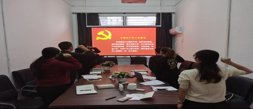 涂晓洁老师带领全体党员重温了入党誓词;党员老师们分段依次诵读了党章总纲的节选内容并集中缴纳了10月份的党费。党支部书记谢俊丽布置了党史教育指定内容的学习任务,并安排了后一阶段的学习内容和要求。