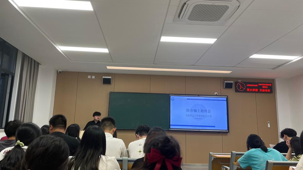 2023年9月7日,辅导员李天赐利用晚自习时间给思政5231班开展了防诈骗主题班会。