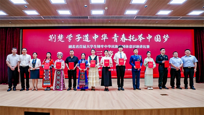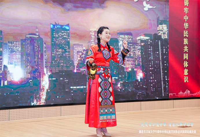 本届赛事经过校赛、省级初赛的层层选拔,最终来自全省40所高校的优秀选手入围决赛。决赛分为高校组和高职组两个赛道,公司谭娥同学经过学工处和所在院系老师的科学指导和严格备赛,在校赛及省级初赛中脱颖而出,以过硬的实力挺进省赛高校组决赛。决赛当天,马克思主义公司教师李天赐带队参赛,谭娥在与华中科技大学、华中师范大学、中南财经政法大学等省内重点高校选手的同台比拼中,结合专业所学与自身的传统文化知识积累,以富有深度、温度和力度的演讲,生动诠释新时代青年对中华民族共同体意识的深刻理解与责任担当,共话民族团结进步,最终以第六名的排名荣获高校组三等奖的好成绩。