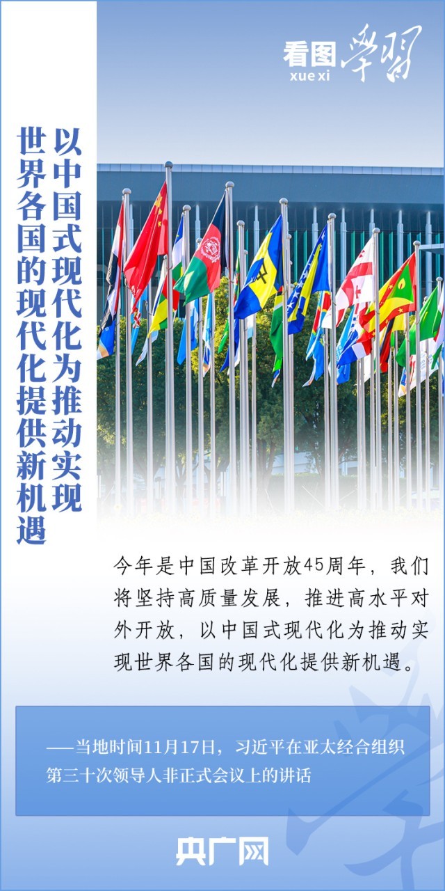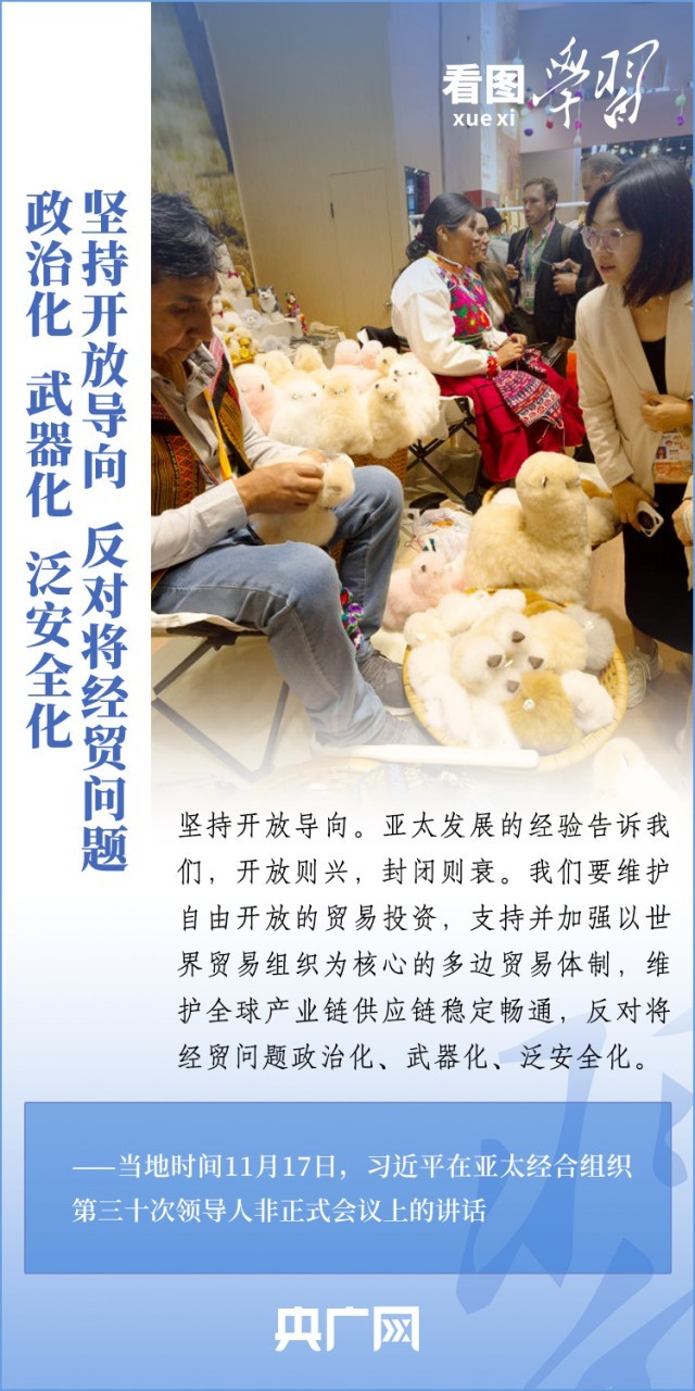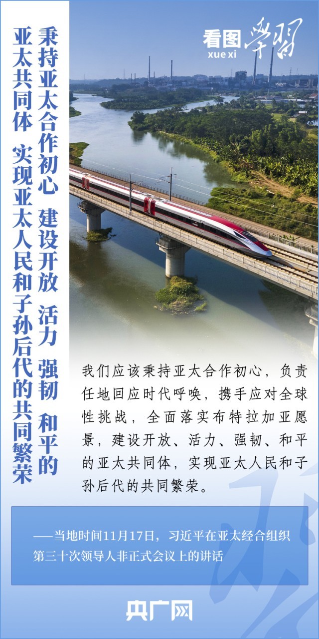 当地时间11月17日上午,亚太经合组织第三十次领导人非正式会议在美国旧金山举行。国家主席习近平出席会议并发表题为《坚守初心 团结合作 携手共促亚太高质量增长》的重要讲话。习主席在讲话中全面阐述了中国对深化亚太合作、促进地区和世界经济增长的重要主张,以“四个坚持”提出多项务实举措,希望同各方一道努力,共同打造亚太下一个“黄金三十年”。一起来学习!