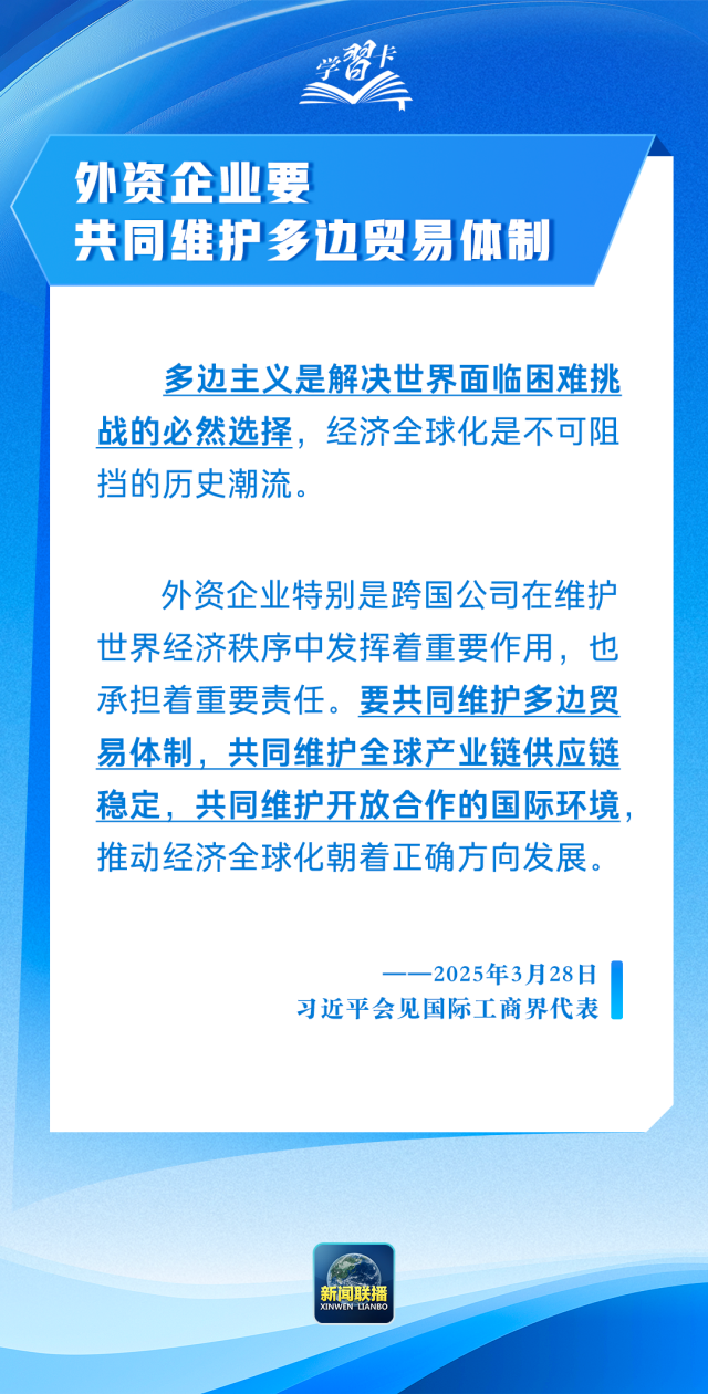 习近平主席强调,中国是有利于外资企业投资兴业的一方沃土,将为外资企业来华贸易投资提供便利,依法保护外资企业合法权益。一起学习↓