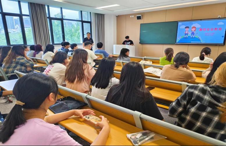班会上,辅导员李天赐老师首先强调了假期安排的问题,提醒同学们在假期中既要好好充实自己,也要注意个人的生命安全与健康防护。接着,班主任郭世德老师深入讲解并分析案例,引导同学们树立正确的安全观念,进行防溺水、防火、防诈骗等暑期安全警示教育。