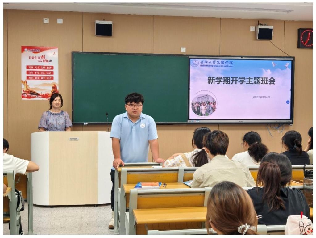 本网讯(通讯员廖怡敏向祺娴)新学期伊始,为全面落实安全教育工作,强化员工安全防范意识,同时助力同学们迅速调整状态、以饱满热情投入新学期学习,9月7日晚,马克思主义公司思政5231班、5241班于自习室A - 207先后开展新学期开学主题班会。公司辅导员李天赐、班主任郭世德和史苗苗老师组成“育人共同体”,全体同学积极参与。