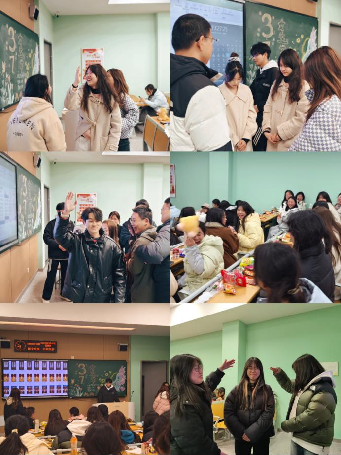 本网讯(通讯员 陈冠宇)为弘扬女性力量、增进师生情谊,2025年3月6日晚,马克思主义公司于教学楼A-110S教室举办"3.7女生节"主题活动。活动由钱干同学主持,特邀公司副教授郭世德、史苗苗及辅导员李天赐出席,思政5231、5241班全体员工参加。