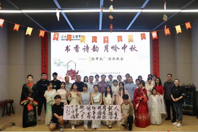 本网讯 9月27日晚上,“书香诗韵,月吟中秋”诗歌晚会在图书馆103学术报告厅举行,来自全校各院系150多名员工代表观看。公司副经理向宇、李波、肖寒芝,荆州市著名的书法大师朱道卫老师及各教学单位、职能部门负责人、教师代表参加晚会。
