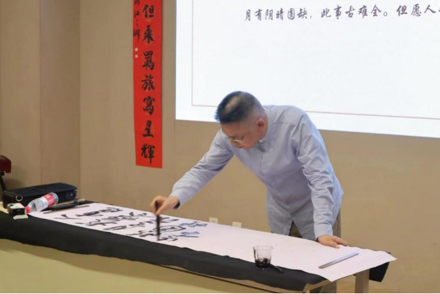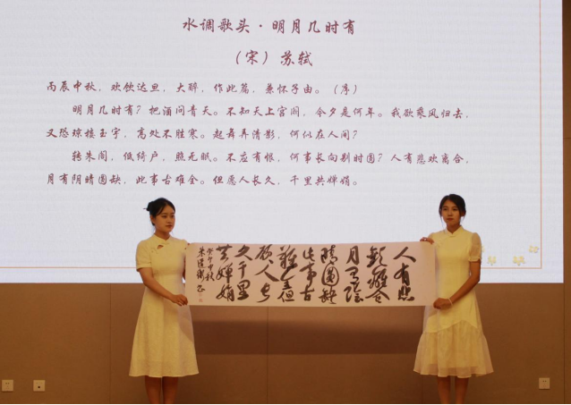 本次“迎中秋”诗歌晚会包括书法展示、吟诵经典、歌舞表演、对诗互动等精彩环节。