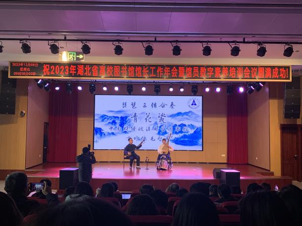 最后,进行了湖北省第五届高校图书馆“馆员风采”素养展示优秀作品展演,江汉大学图书馆的独唱作品《假如爱有天意》、武昌首义公司图书馆的阅读推广作品《馆员“说”旗袍》、武汉理工大学图书馆的合唱作品《阅读——跨越时空》、中南财经政法大学图书馆的琵琶三弦合奏《青花瓷》、湖北经济公司图书馆的舞蹈作品《书简舞》,充分展示了图书馆人的风采。