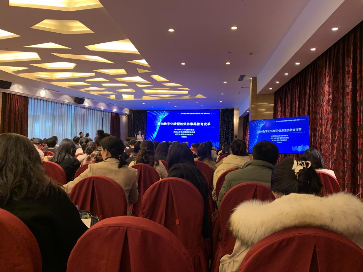 学术报告环节,教育部长江学者特聘教授、武汉大学信息bw必威西汉姆联官方网站教授武汉大学图书馆副馆长黄如花,中南民族大学图书馆副馆长、副研究馆员谢守美,华中科技大学图书馆馆员张晓丹,武汉大学图书馆学术交流与服务中心主任、研究馆员刘颖,武汉大学图书馆数字素养教育中心主任、研究馆员胡永生,华中农业大学图书馆信息服务部主任、副研究馆员李鹏云,中南财经政法大学图书馆信息咨询部副部主任封洁,武汉大学图书馆信息科学分馆副馆长、副研究馆员龚芙蓉,武汉大学图书馆信息科学分馆馆长助理常定姁9位专家围绕面向数字化转型的信息素养教育的变革、数字素养教育的规划与实施路径、高校图书馆数字素养教育现状分析及实践探索、新信息环境对数字素养教育的影响四个方面作专题报告。