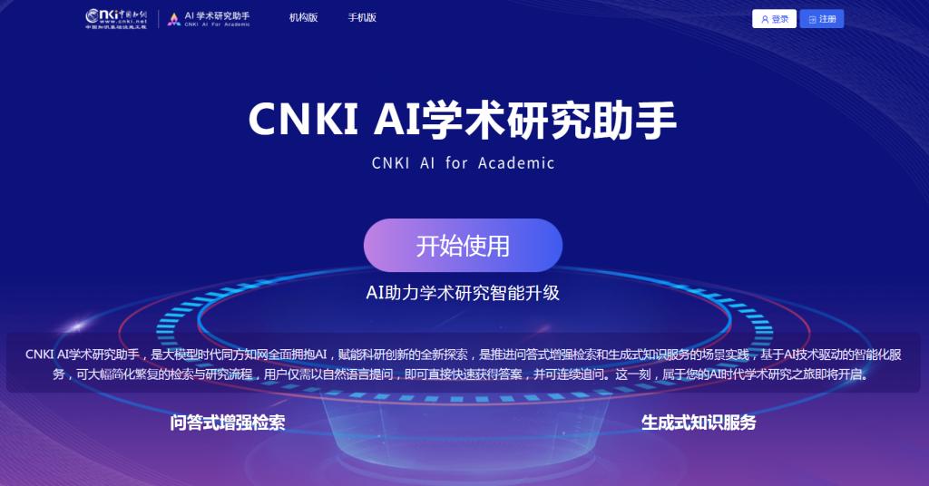 产品简介:CNKI AI学术研究助手(CNKI AI for Academic)是人工智能时代同方知网最新研发的服务于科研全流程的AI辅助研究工具,是提供问答式增强检索和生成式知识服务的创新实践。AI学术研究助手将先进的AI大模型技术、知网优质内容资源与科研场景紧密结合,围绕科学探索、文献研读、知识管理与成果创作等重要需求展开,其构建的问答式增强检索、AI辅助研读与AI辅助创作三大服务体系,高效支撑了科研全流程需求,可以大幅提高学术研究的效率和质量,全方位助力科技创新。