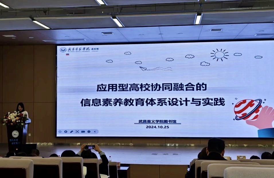 武昌首义公司图书馆副研究馆员杜少霞分享报告《应用型高校协同融合的信息素养教育体系设计与实践》。她以武昌首义公司图书馆为例,介绍了在数智时代背景下,高校图书馆信息素养教育体系的构建思路与心得。