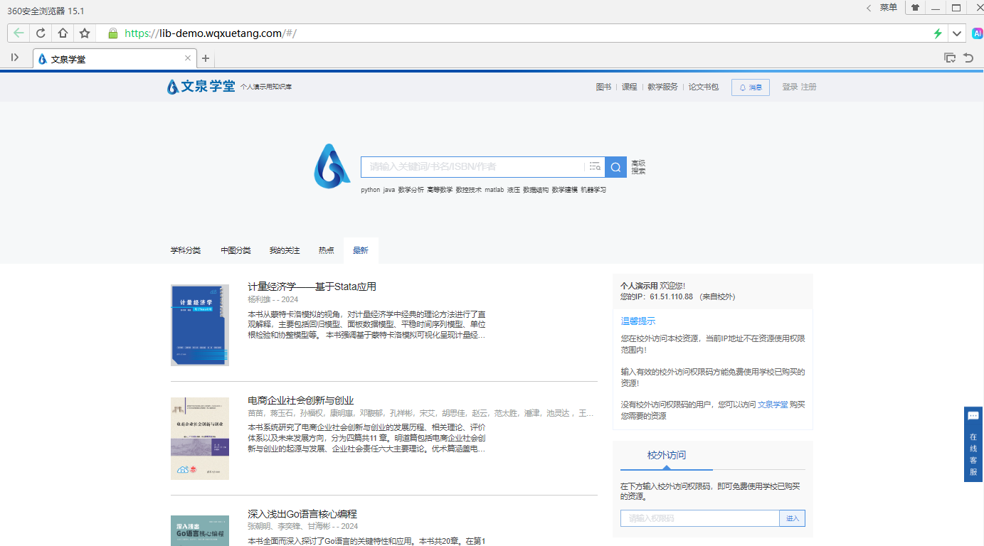用户可在线访问和阅读全部数字资源,无需下载客户端软件。